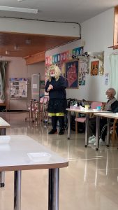 消火器の使用を疑似体験しました(毎回、やってるので職員も慣れた様子…⁈)